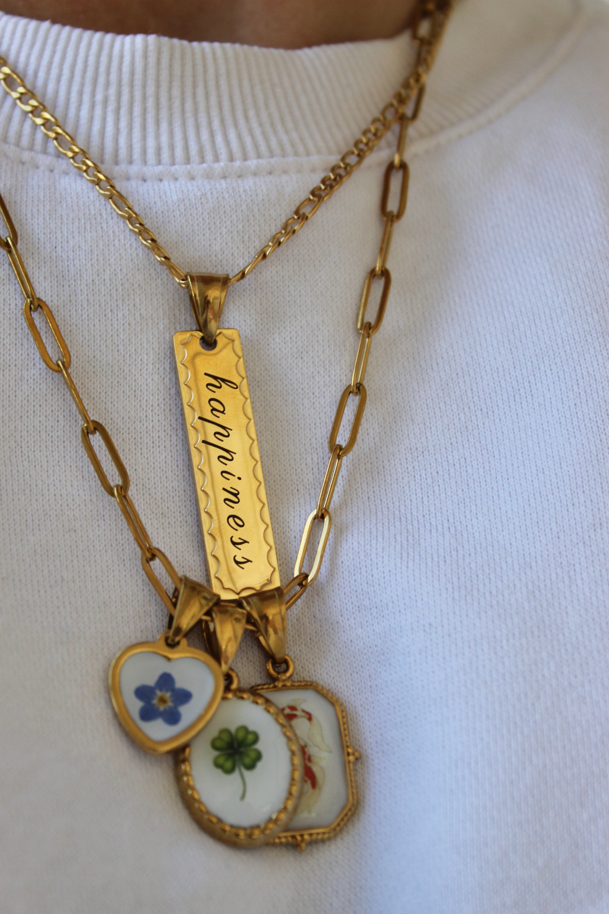 Materiale: Realizzato con incisione laser, in acciaio inossidabile e bagnato in oro 18k (waterproof).
