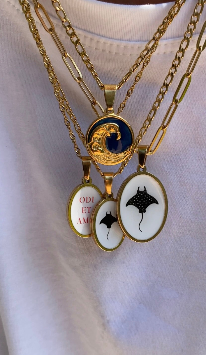 Materiale: Realizzato in acciaio inossidabile bagnato in oro 18k (waterproof) e design originale Namari incastonato a mano.
