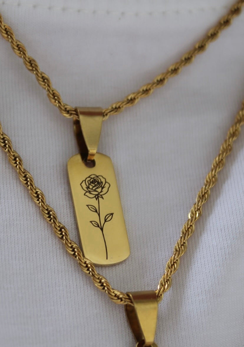 Materiale: Realizzato con incisione laser, in acciaio inossidabile e bagnato in oro 18k (waterproof).
