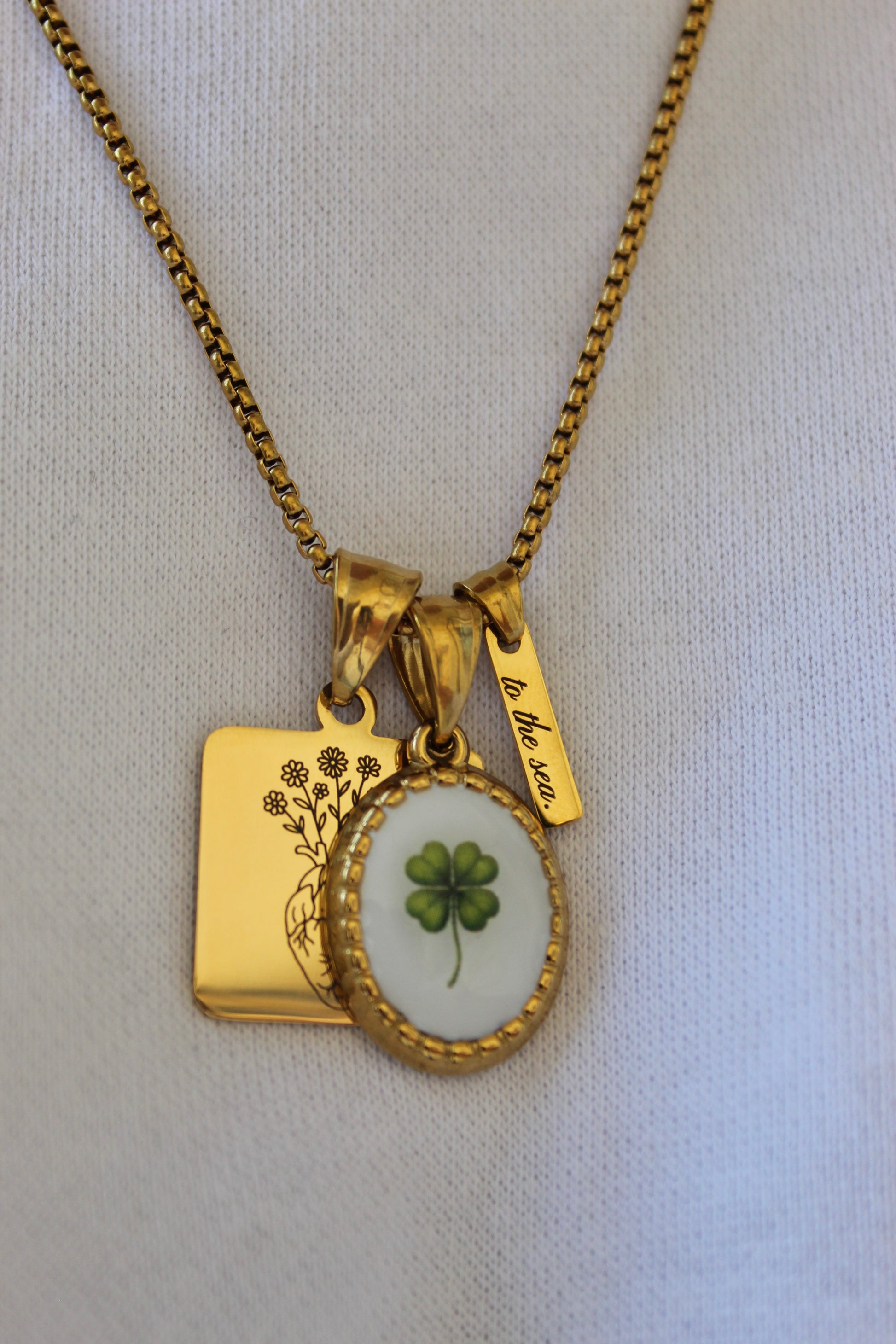 Materiale: Realizzato con incisione laser, in acciaio inossidabile e bagnato in oro 18k (waterproof).